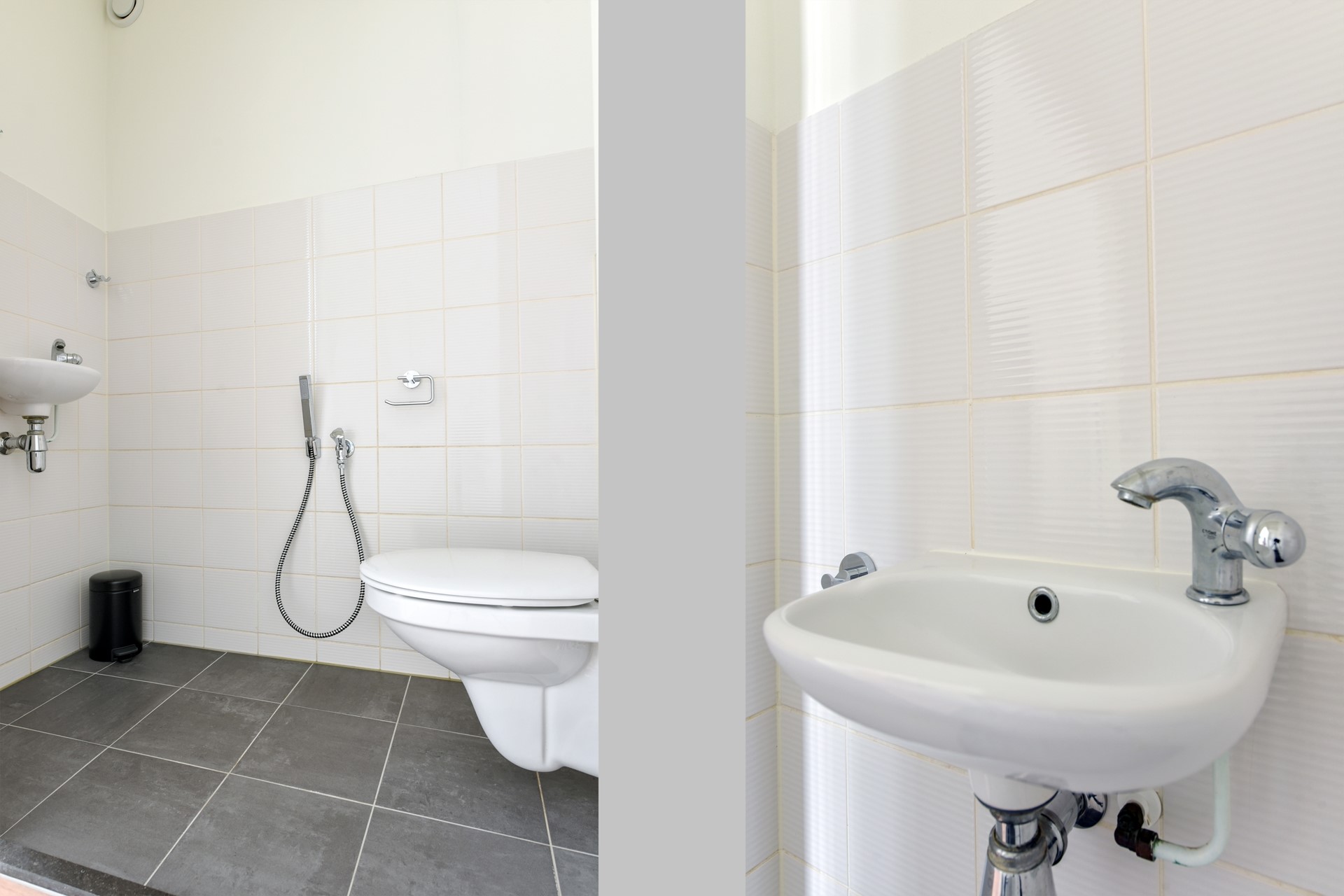The spacious hall is equipped with a videophone installation, laminate flooring, all-white walls, a fine spray ceiling and a private meter cupboard which is equipped with 5 groups and 2 earth leakage switches. A separate hanging toilet with a tile floor, the walls are half tiled, a fountain and mechanical ventilation. A fully tiled bathroom with a fine spray ceiling, sink, radiator with thermostatic tap, shower cabin with a mixer tap and shower curtain, a bath with mixer tap, mechanical installation and the bathroom has natural light.