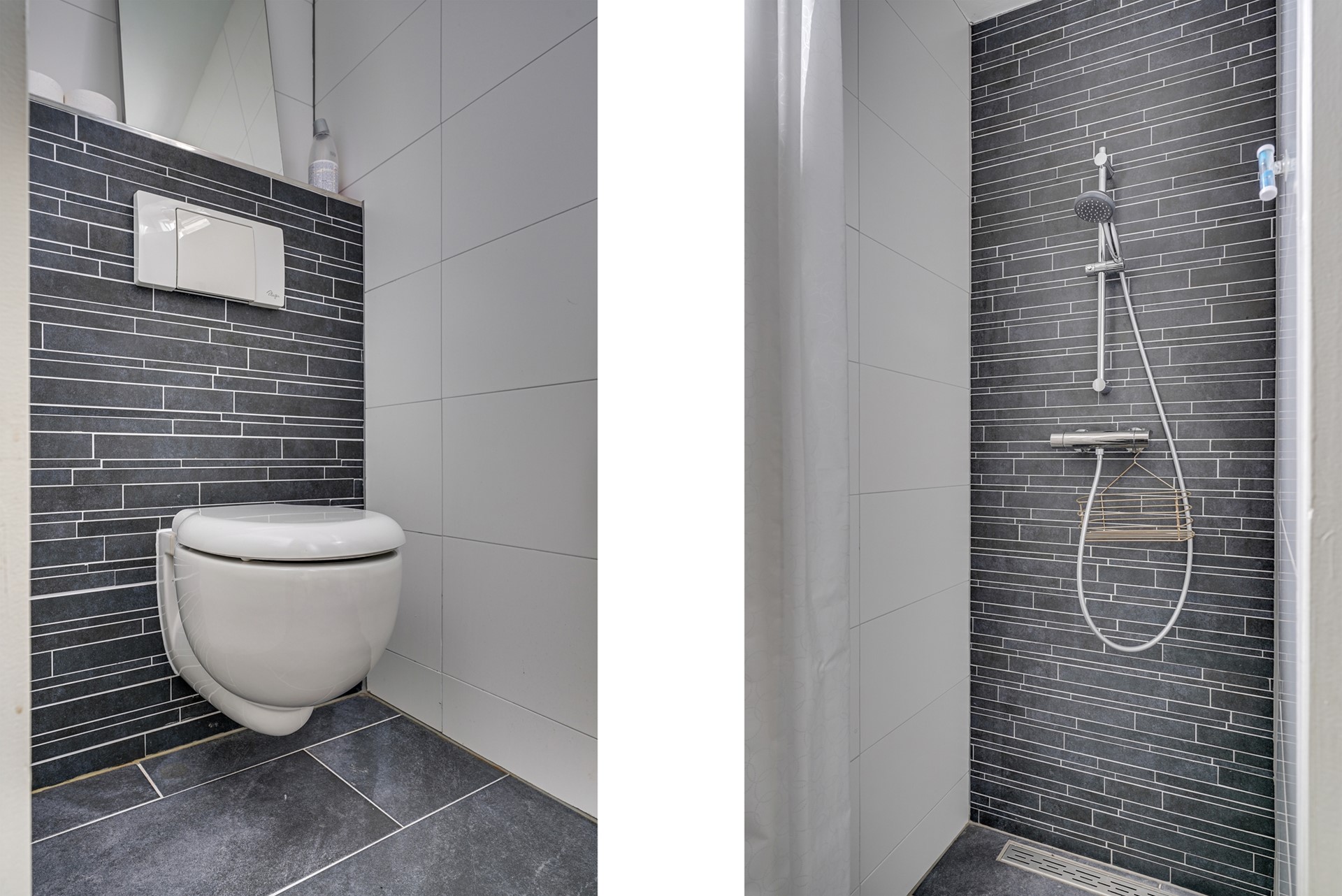 The spacious living room shines thanks to the abundance of natural light, the cleanly plastered walls and ceilings, and the modern tile floor that is both stylish and easy to maintain. For added comfort, the living room is equipped with air conditioning, so you can enjoy a pleasant indoor climate all year round. An elegant staircase in the living room provides access to the second floor and adds a playful element to the space. The open kitchen seamlessly connects to the living room and leads to the practical utility room. This space offers plenty of possibilities, such as a cozy chill area, a convenient home office or the ideal place for the washing machine and connections. Moreover, the utility room is equipped with a small but complete bathroom with a toilet, a compact sink and a shower - perfect for extra convenience or lodgers. This is where luxury and functionality come together perfectly!
