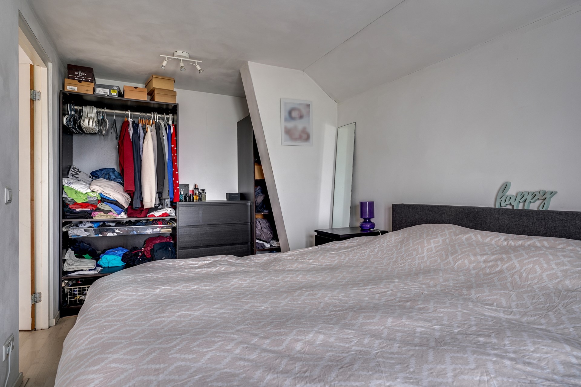 Through a fixed staircase to reach the second floor, where you will find a spacious bedroom, equipped with new laminate flooring. This attic room is located at the rear and features a Velux skylight that provides pleasant daylight. In addition, there is plenty of practical storage space on this floor. Also located here is the central heating system (Nefit combi boiler, 2023).