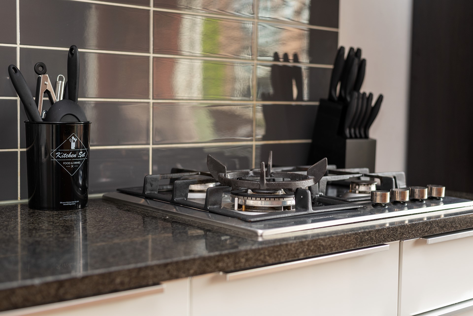De moderne en luxe open keuken is van alle gemakken voorzien. Namelijk een 4 pits gaskookplaat, RVS afzuigkap, combimagnetron,