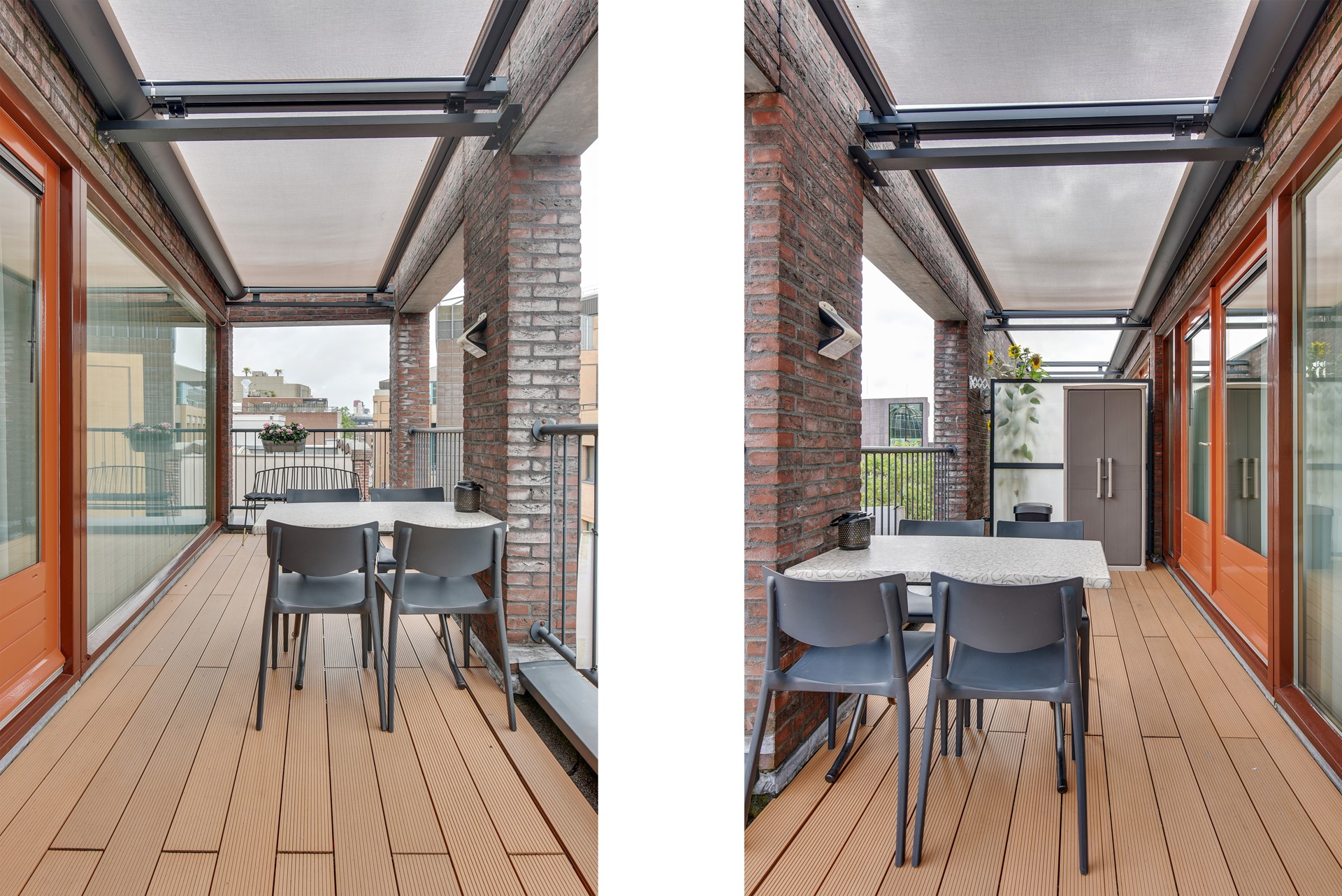 Het ruime dakterras is voorzien van vlonders, een elektrisch zonneluifel met mooie uitkijk over het dakterras van de heuvelgalerie, het gezellige Jan van Lieshoutstraat, de markt van Eindhoven. Kortom een unieke plek om heerlijk te vertoeven.
