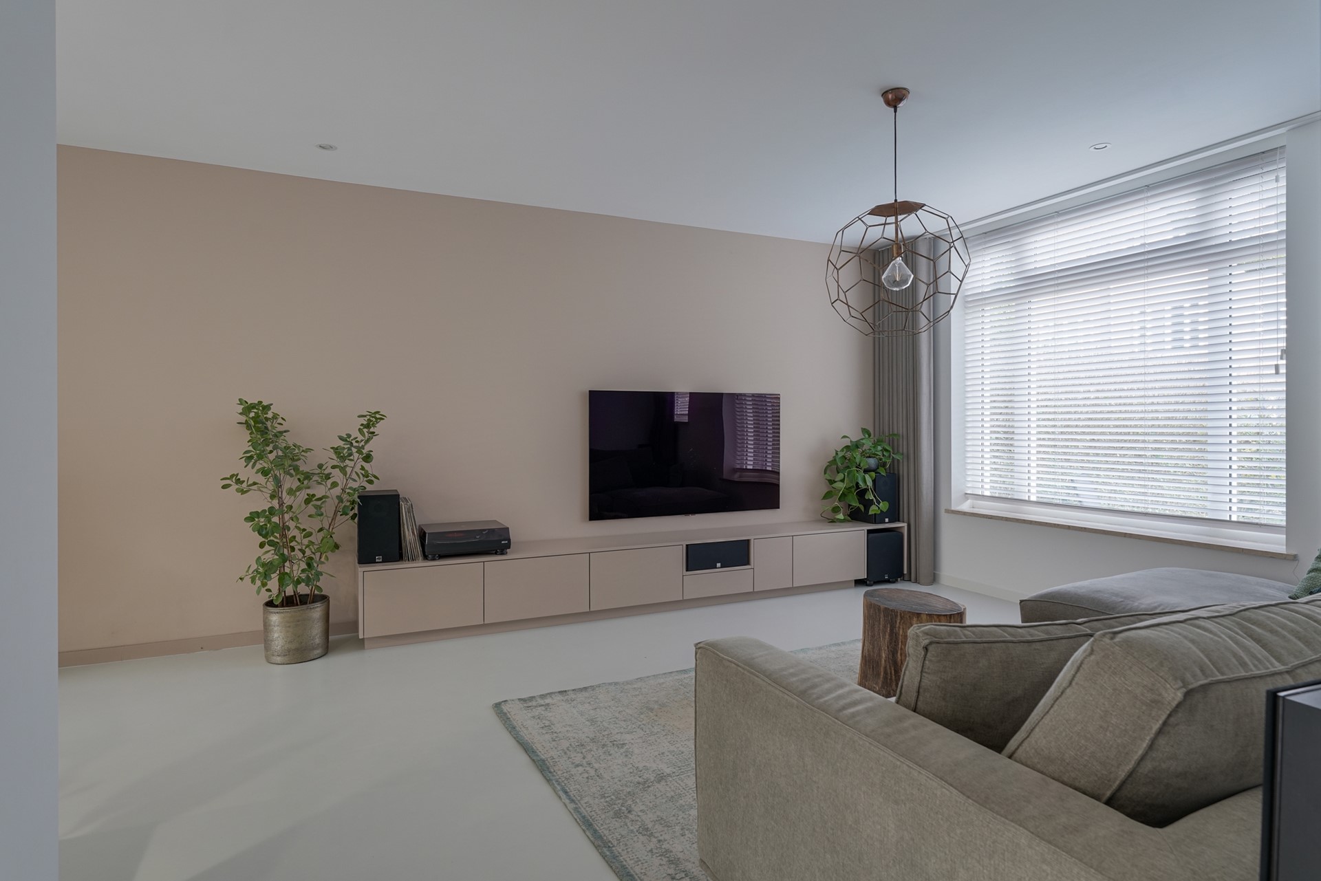 Bij binnenkomst valt direct de rustige en lichte sfeer op. De woonkamer is ruim opgezet en voorzien van grote raampartijen die zorgen voor veel natuurlijke lichtinval. De woonkamer staat in open verbinding met de eethoek en keuken, waardoor er één grote leefruimte ontstaat. Dit maakt de ruimte ideaal voor zowel ontspanning als gezellig samen zijn.