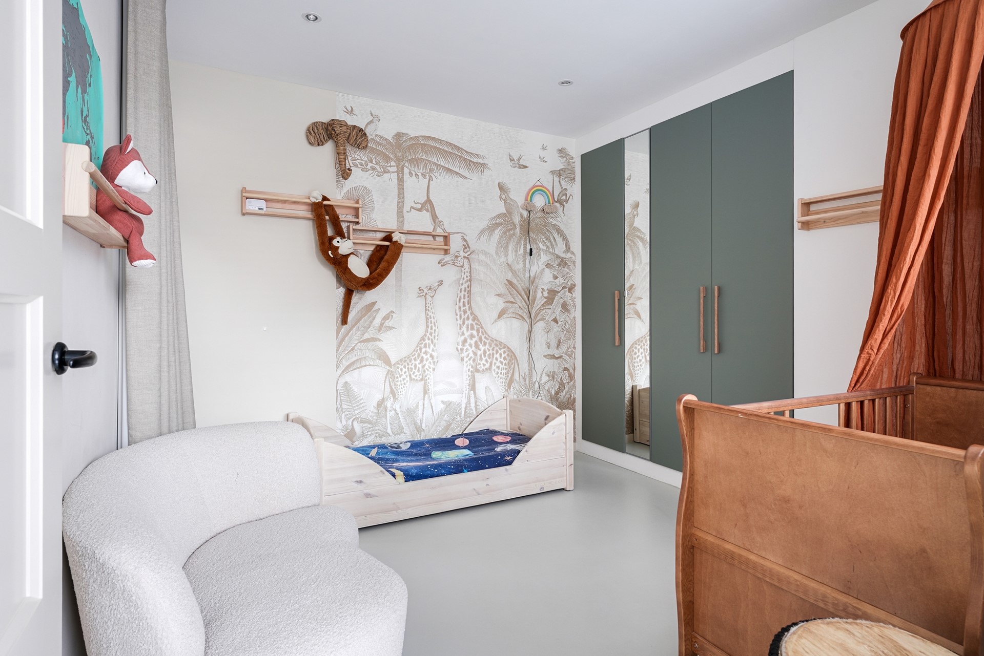 De slaapkamers zijn ruim en licht en bieden een rustige ambiance. De afwerking is modern en tijdloos, met strakke wanden, goede verlichting en een kwalitatieve vloerafwerking. De master bedroom biedt extra comfort en beschikt over directe toegang tot de badkamer en voldoende opbergruimte. De kinderkamer is met zorg ingericht en afgewerkt in warme tinten.