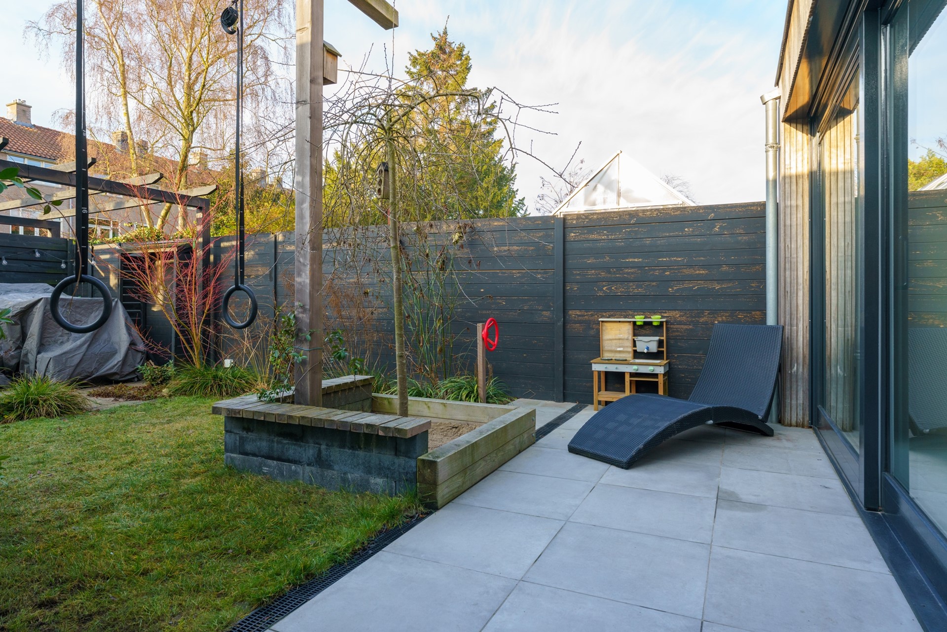 Via de grote schuifpui heeft u direct toegang tot de tuin en het terras. De onderhoudsvriendelijke buitenruimte is praktisch ingericht en biedt volop mogelijkheden om te ontspannen. Het terras leent zich uitstekend voor een comfortabel loungegedeelte, waardoor u hier op elk moment van de dag kunt genieten van zonnige momenten, lange zomeravonden en ontspannen koffiemomenten in de buitenlucht.
