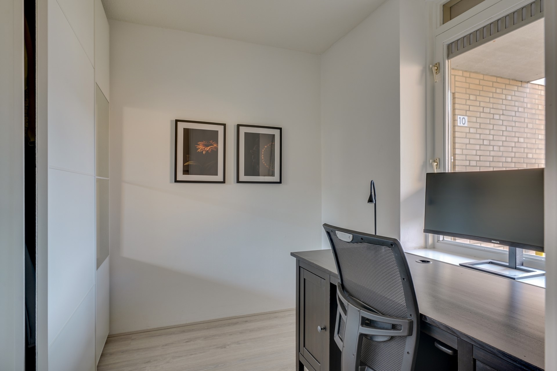 Slaapkamer 1: Deze comfortabele kamer is voorzien van een grote kledingkast en bureau, ideaal voor een werkplek.