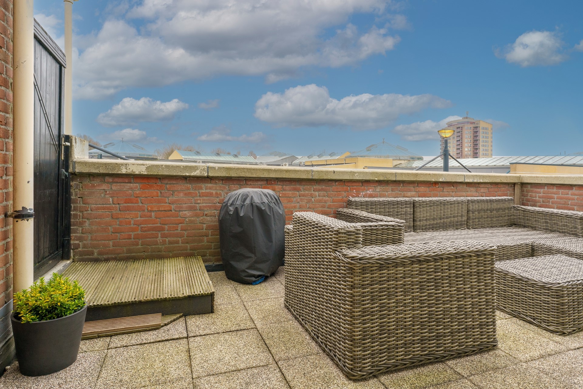 Het ruime dakterras vormt een waardevolle verlenging van de woonkamer en biedt volop mogelijkheden om te genieten van het buitenleven.